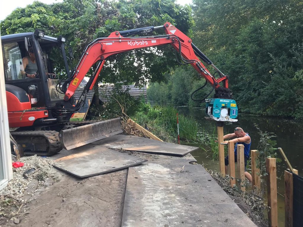 Afgelopen week met het mooie warme weer tuintje leeg gehaald en paalschot beschoeiing aangelegd.